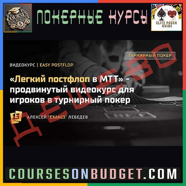 Курс Exan13 “MTT Easy Postflop (Лёгкий постфлоп)” — это полностью структурированная система обучения постфлоп-игре в МТТ, созданная на основе 7-летней тренерской практики Алексея “Exan13” Лебедева. Материал подаётся последовательно — от базовой математики постфлопа до передовых концепций работы с типами досок и продвинутых блеф-механик.