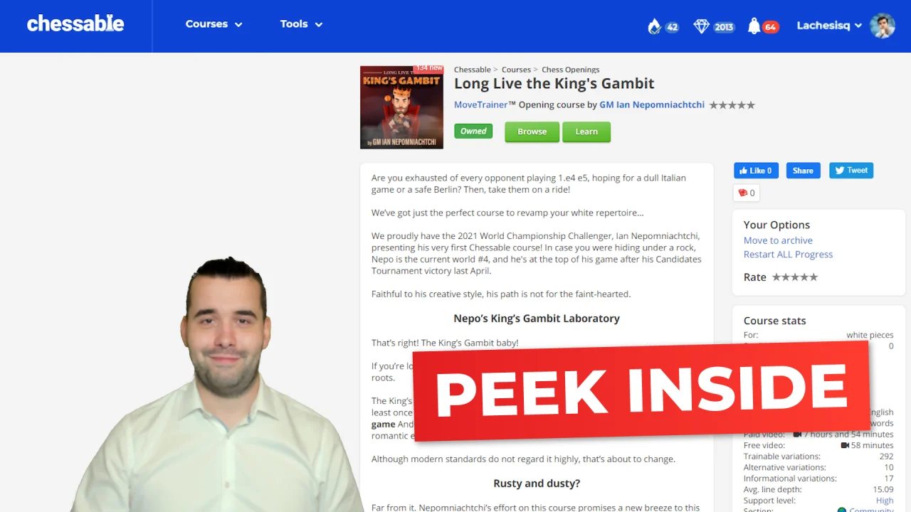 What is GM Ian Nepomniachtchi Long Live the Kings Gambit for Cheap?